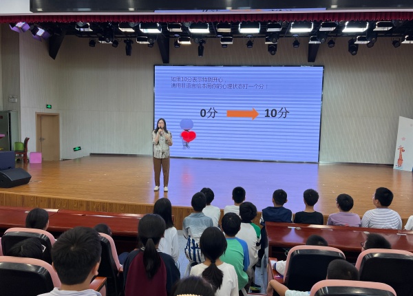 讲座接近尾声时,同学们再次为自己的心理状态打分,许多同学开心地高举双手,表示分数有了明显提升。