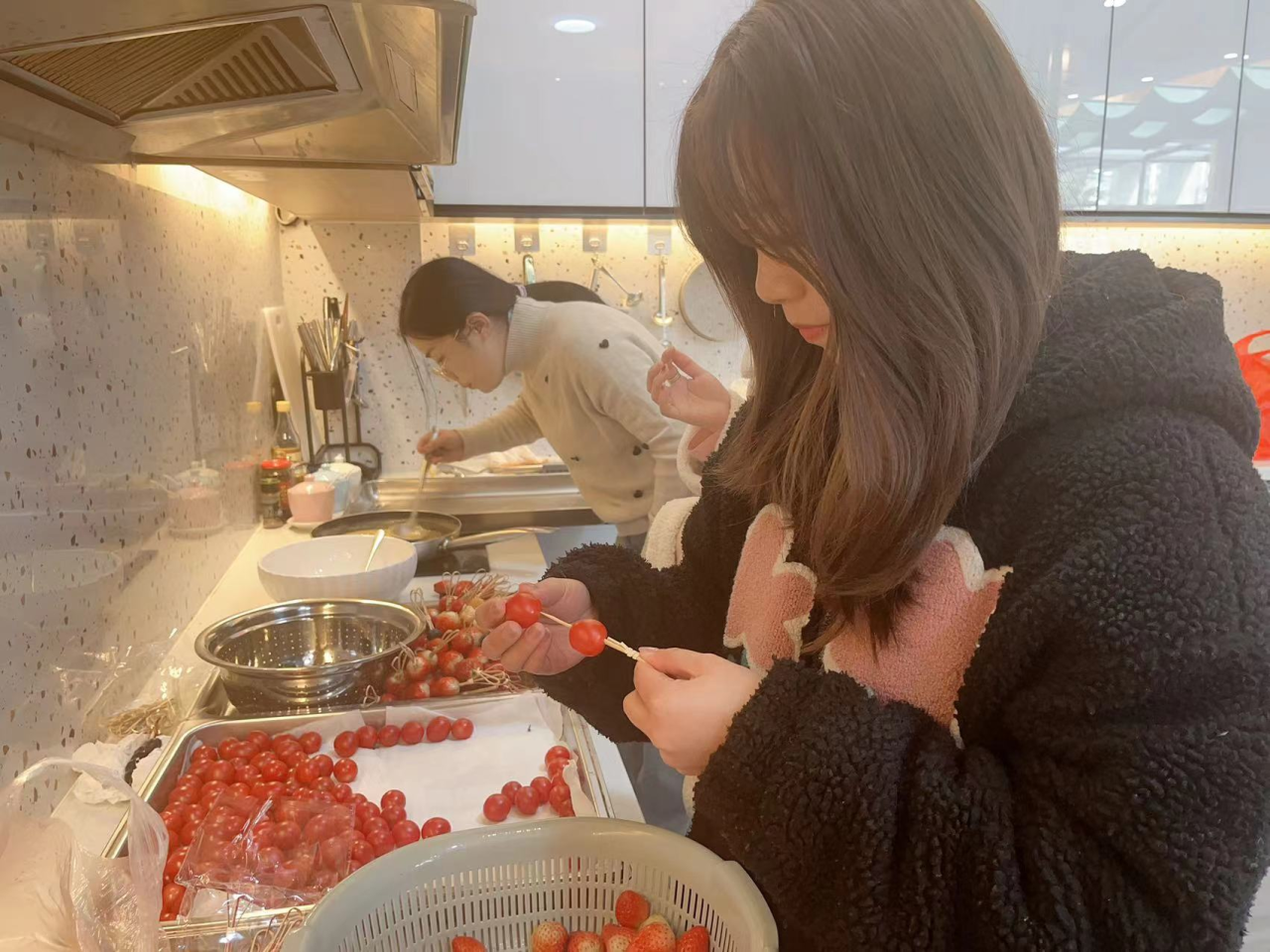 冰糖葫芦是中国传统小吃之一,相传起源于南宋期间,象征着团圆和甜蜜,为营造春日的温暖氛围,弘扬中华传统文化和传承中华老味道。老师们齐聚劳动基地开展手工制作冰糖葫芦的活动,大家在熬糖浆,裹糖葫芦的欢声笑语中感受着丰富的生活情趣。