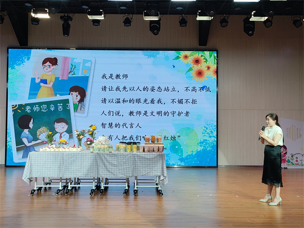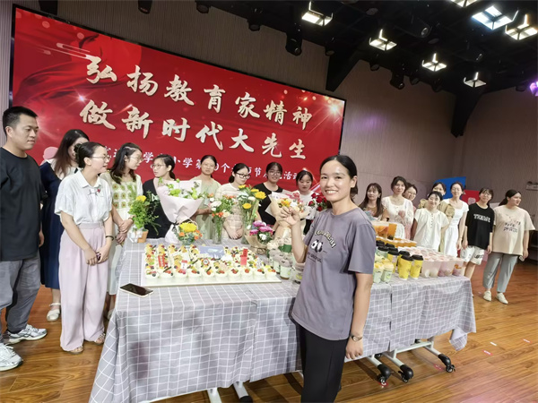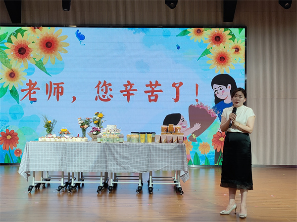 接着,沈静副校长代表学校工会给老师们准备了奶茶和写着名字的专属小蛋糕,用“甜蜜”的仪式感给老师们送来了祝福。