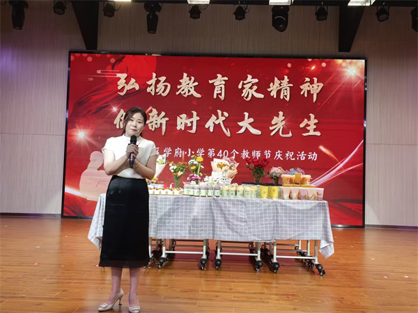 首先,壮亚芬校长致辞。她表示,正是老师们的孜孜不倦、无私奉献,才让我们的学府小学更加和谐美好;正是她们的有情有爱、乐业专业,才让学府小学的孩子们健康茁壮成长!