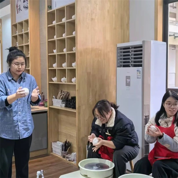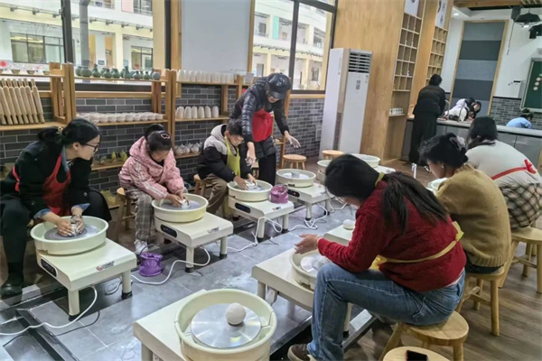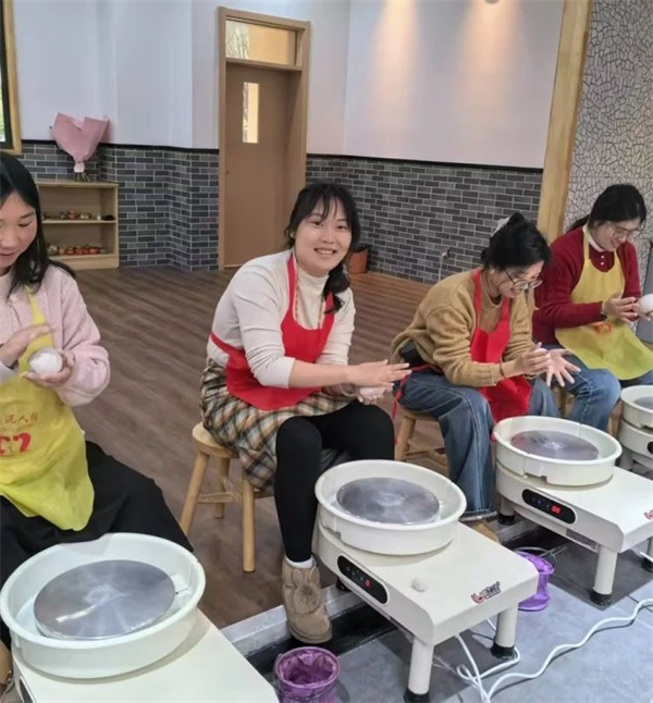 陶艺教室则弥漫着泥土的芬芳。柔软的陶泥在女教师们的手中被揉捏、拉伸、塑形,她们或轻抚、或按压,用心感受着陶泥的质感与温度。陶泥仿佛被赋予了生命,从一团混沌逐渐变得灵动而富有生命力。女教师们在这泥土与指尖的互动中,体会着传统工艺的魅力,感受着从无到有的创造过程,仿佛也回归到最纯粹的创作初心,将教育的热情与艺术的热爱完美融合。