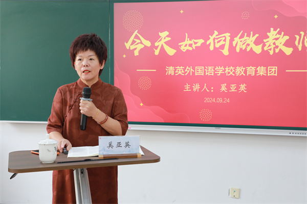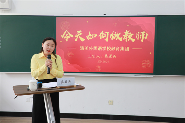思想有声,行动留痕,在时光里赶路,在思考中收获。每一次学习,都是一场美好的开始。每一次培训,都是一场自我的修行。每一次启程,都将跨越新的成长之阶。为助力教师在教育征途上稳健启航、明晰方向,提高教师职业素养和专业能力,9月24日中午,清英外国语教育集团总校长奚亚英为学府小学全体教师开展培训。