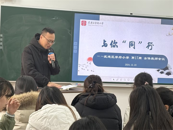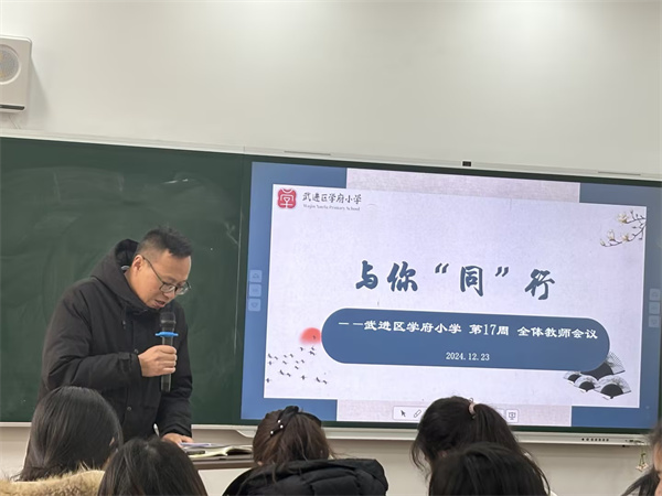 12月23日中午,武进区学府小学开展了第十七周工作会议。本周教师会议的主题是“与你‘同’行”。在教育这条道路上,我们携手共进,用智慧和热情引领学生成长。教育,是我们共同的使命,与你同行,我们无畏前行。