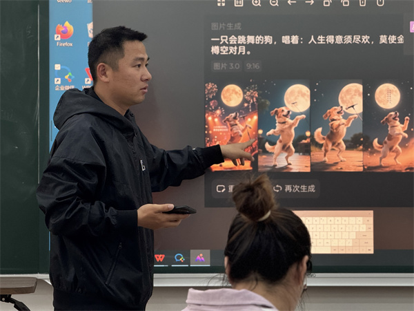 会议伊始,主持人金佳琪主任强调“工欲善其事,必先利其器”,号召全体教师积极拥抱AI技术。韦人杰老师率先分享前沿AI工具的教学应用,许书冉与张丹老师结合案例展示AI在课堂实践中的创新成果,生动诠释“技术为教育插上翅膀”的理念。