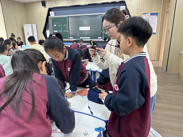 活动伊始,学府小学朱喆羽老师带来科学课堂展示《力与运动》。课堂上,朱老师通过趣味实验、小组探究等形式,引导学生直观感受力与运动的关系,为信息科技大单元教学提供了跨学科的教学思路借鉴,展现了结构化教学的实践魅力。