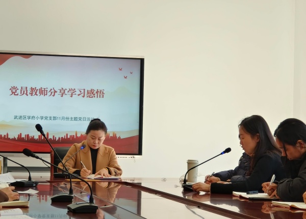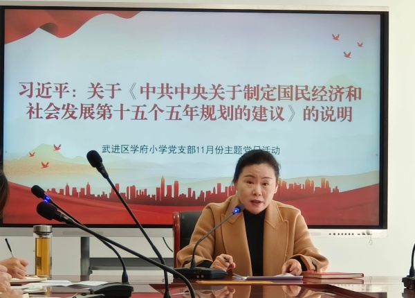 为深入学习党的理论方针、凝聚党员教师育人合力,11月19日下午,武进区学府小学在二楼会议室开展以“凝聚共识绘蓝图,砥砺奋进启新程”为主题的十一月党日活动,全体党员教师参与此次学习。