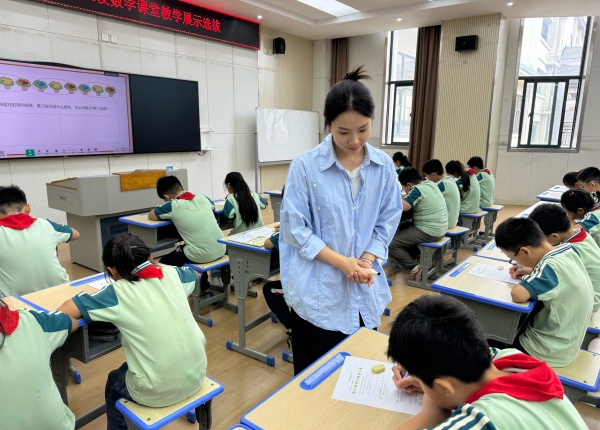 在学府小学的数学课堂上,有这样一位教师,她将师德熔铸于专业深耕,把匠心倾注于教学细节。她就是五年级数学教师彭悦雯,一位在逻辑与严谨的数学世界里,以勤修业、以严修德的教育耕耘者。