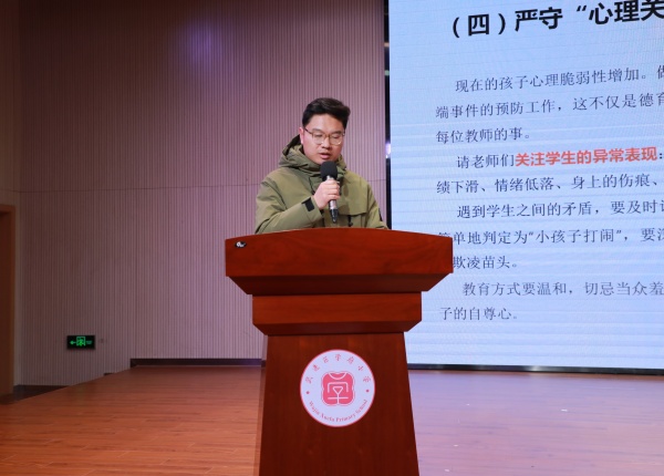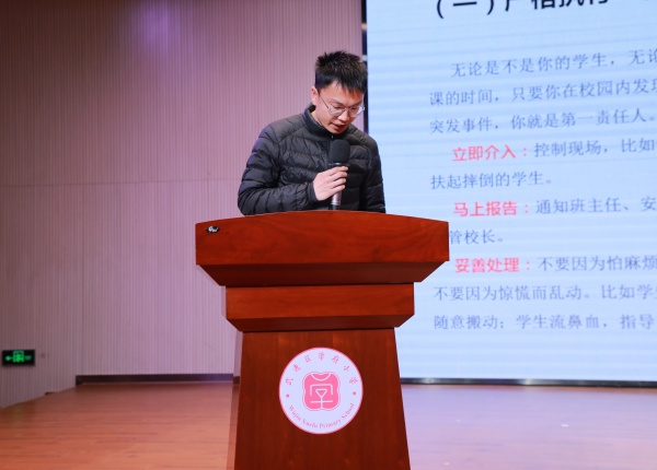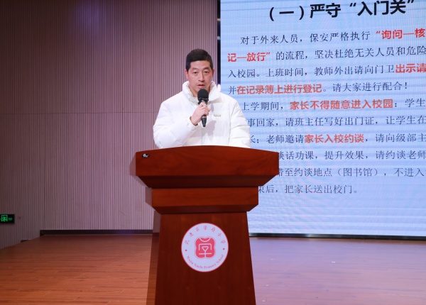 最后,对全体老师作“筑牢校园防线,守护生命成长”的校园安全管理培训,厘清责任,守好校园安全的“七大关口”,明确应急处置流程,让“讲安全”像“问好”一样,成为师生的日常习惯。
