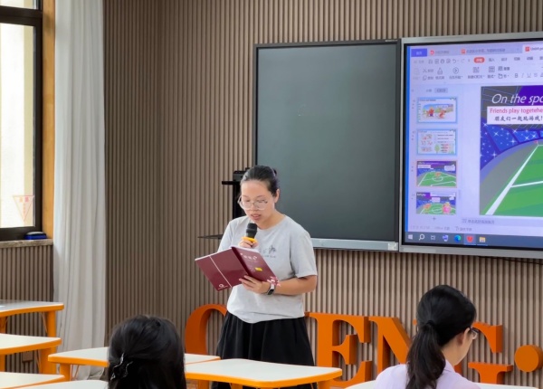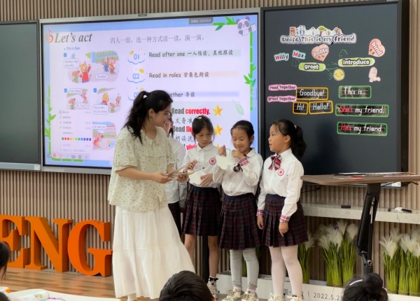 评课环节中,清英外国语的胡校长赞扬了两位年轻老师的课堂,是一节结构完整,逻辑清晰,高度参与的课堂。胡校长也从一些细节之处,对两位老师提出了建议,两位老师可以通过一些过渡语的变化,让学生对课堂指令更清晰明了。最后,胡老师提出,我们在评课看课时要做到,读懂学生,读懂教材,读懂设计,这样才能提升自我教学设计能力。