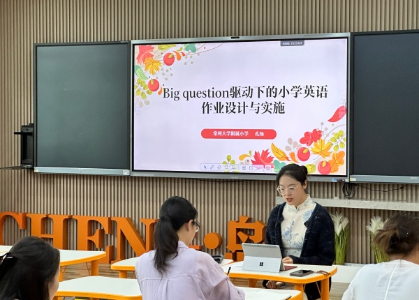 在教研的尾声,我们迎来了来自常大附小的孔炀老师的讲座《Big Question驱动下的小学英语作业设计与实施》,她的讲座分为研究背景、案例分析和总结回顾三个方面。孔老师以旧教材四下U3和新教材四上U2为例进行分析,提出教师要研读单元语篇,明确教学目标,并依据单元目标,实施单元作业,在开展作业评价时要学会以评育人。孔老师认为在设计作业时,应当根据学情设计分层作业,根据学生特点设计趣味作业,根据教育热点设计实践性作业,从而巩固基础,提升拓展。
