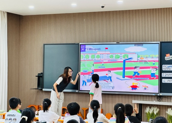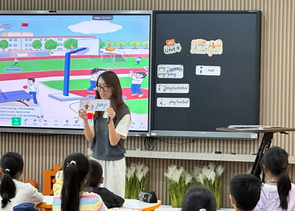 来自清英外国语的陈新宇老师执教四7班unit 4<I like sport>。陈老师口语流利,课堂指令简洁,态度温和可亲,让学生全身心投入课堂。这节课围绕sport这一核心,以What sport do you like?Why?这一单元大问题作为脉络,和学生探讨了运动类的爱好。学生通过感知主题图了解关于各类运动的新单词,通过讨论动物朋友的爱好掌握cartoon部分的课文内容,通过act,free talk和video这些环节来探讨自己的爱好,明白运动让人愉悦,让人健康的道理,符合新课标的阅读,运用能力提升和情感价值目标。