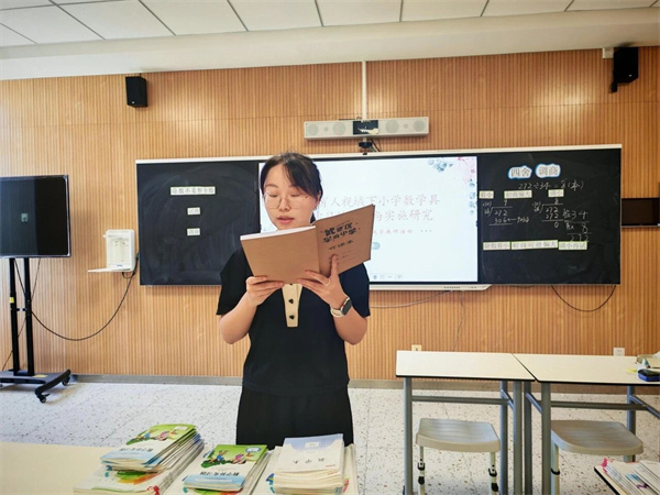 杨子文老师指出:戚老师教学基本功扎实,讲授新知识时循循善诱,课堂氛围融洽。整节课结构清晰、重点突出,实现了数学学习与生活情境的有机融合。戚老师不仅传授了“四舍调商”的具体方法,更注重培养学生的数学思维与探究能力,为计算类教学提供了优秀范例。