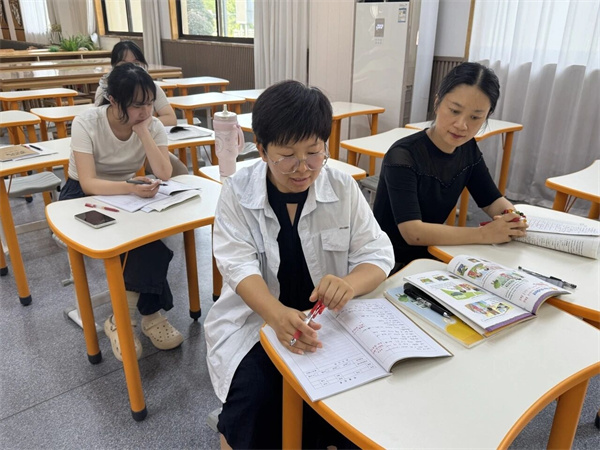 活动的第三板块是“作业互检”。各年级教师代表交叉检查课课练、补充习题,聚焦“双姿”规范、批改复批、错题回炉三个维度。教研组各位老师分别从各个年级的两个作业批改中都学到了“金点子”,纷纷表示可以将这些优点运用到自己的作业讲解和批改中。