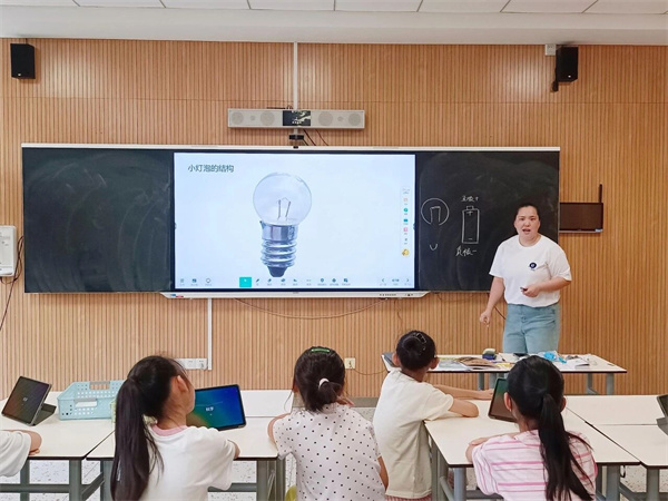 龚晓佳老师运用现代信息化技术,成功执教了一堂别开生面的小学科学课——《点亮小灯泡》。本节课以学生为中心,深度融合信息技术,充分激发了学生的探究兴趣,提升了课堂效率,展现了智慧课堂的独特魅力。针对传统实验中材料限制与安全隐患,龚老师引入AR技术,在虚拟界面中多角度观察小灯泡内部结构,理解灯丝、金属支架等部件的功能。这节课生动诠释了“做中学”的教育理念,为我校智慧教学的深入推进提供了宝贵经验。