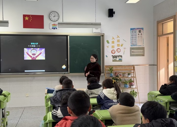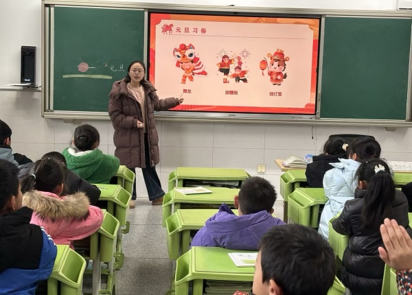 三(7)班徐俭妈妈走进班级,带来了一场生动的元旦主题分享。课堂上,她用趣味课件讲解元旦习俗,孩子们听得津津有味,纷纷举手抢答问题,课堂氛围十分热烈。