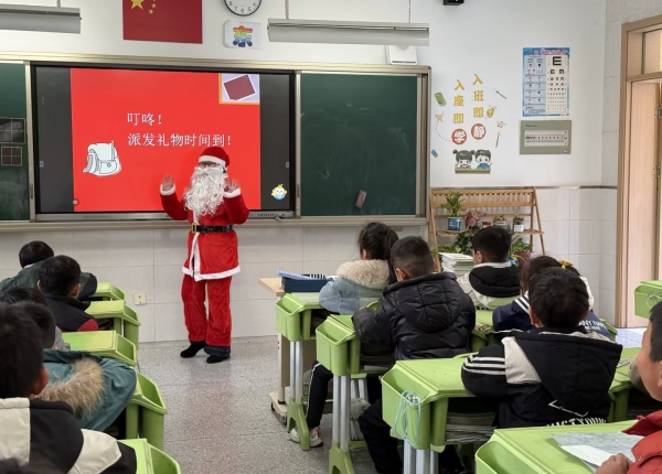 课堂的尾声,惊喜悄然降临!黄艺涵妈妈换上圣诞老人的装扮,缓缓走进教室。原来她早就悄悄收集了孩子们的小心愿,此刻正一一为大家送上心仪的礼物。拿到礼物的孩子们眼睛发亮,欢呼声此起彼伏,笑容在每张小脸上绽放。