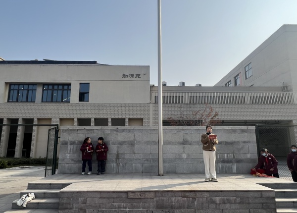 本周升旗手由二7班王问瞳同学和舞蹈社团的团员们担任。全体师生肃立,高唱国歌,少先队员行队礼,在庄严的氛围中共同见证国旗升起。随后,史成娟老师发表国旗下讲话,围绕“尊崇宪法、学法守法”主题,引导学生树立法治观念,增强宪法意识,争做知法、懂法、守法的新时代好少年。