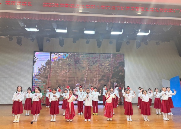 从三一班《我爱你中国》里纯粹的告白,到三(2)班《万疆》中对锦绣山河的礼赞;从三3班《一路生花》里满溢的希望,到三4班《祖国的希望》中少年的担当——每一首歌曲都是一次情感的传递。三(5)班《灯火里的中国》用温暖旋律勾勒繁华,三6班《半生雪》以倔强歌声诠释勇气,三(7)班的精彩表演彰显“强国有我”的信念,三(8)班《我和我的祖国》更是将全场氛围推向高潮,团结的力量在歌声中久久回荡。