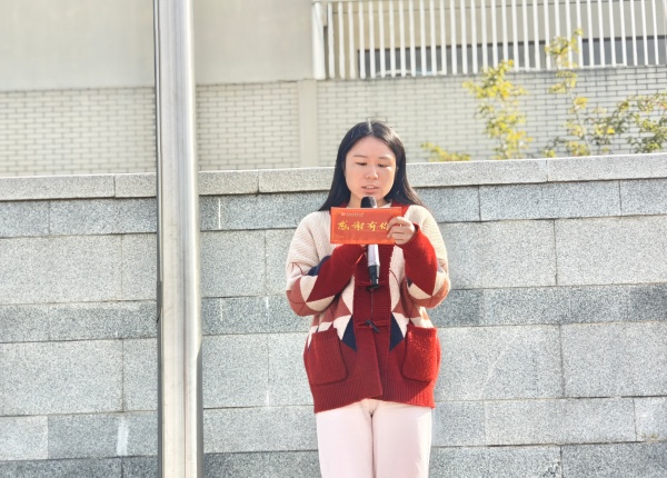 国旗下讲话环节,章云枫老师生动阐释了“终身学习”的意义:“学习不是任务,而是像每天吃饭、呼吸一样自然的事,课间读一本课外书、课后探索一个小实验,都是学习的模样。” 接着,她给出具体建议:鼓励同学们每天花15分钟阅读、遇难题主动请教、用笔记记录新发现,把学习变成日常小事;还提议结合兴趣学习,比如爱画画就研究色彩,让兴趣成为学习动力。最后,章老师强调持续学习的意义,不仅能提升成绩,还能让人更会思考、更懂表达,帮助解决生活难题,助力同学们成长为更优秀的自己,号召大家将学习融入日常,积累成长力量。老师的话语贴近学生生活,让在场同学频频点头。