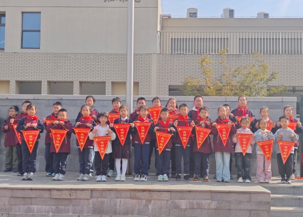 国歌奏响的瞬间,红旗缓缓升空,少先队员们高举右手,目光追随着国旗向上攀升,嘹亮的歌声回荡在校园,每一个音符都饱含着对祖国的热爱,也呼应着“让学习成为一种生活方式”的主题——正如国旗向上生长,学习也助力少年不断成长。
