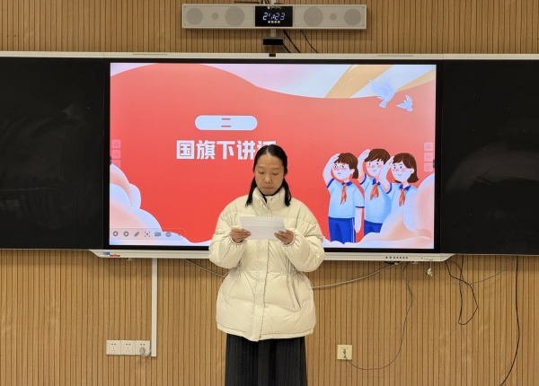 升旗礼毕,俞钰老师作国旗下讲话。她向同学们讲解:大寒是二十四节气之末,标志着严冬的顶点,也孕育着新春的序曲。此时节,民间素有“食糯”“扫尘”“糊窗”等习俗,在岁寒之中守望温暖,于辞旧之际沉淀千年智慧。