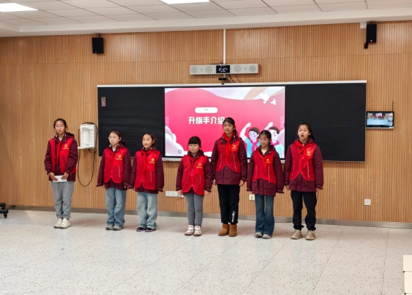 仪式在庄重而温馨的氛围中拉开帷幕。四(7)班主持人王问伊、胡泽宇以清晰有力的开场阐述了本次主题,并介绍了升旗手——杨梓馨同学。伴随着激昂的《义勇军进行曲》,五星红旗冉冉升起,全校师生肃立凝视,少先队员行队礼,歌声嘹亮,爱国情怀在庄严时刻凝聚升腾。