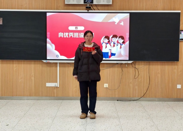仪式最后,大队委宣布了上周常规检查评比结果,并为表现突出的班级颁发了流动红旗。此项环节鼓励全体同学在日常生活中践行规范、团结进取,在集体中培育责任意识与荣誉感。